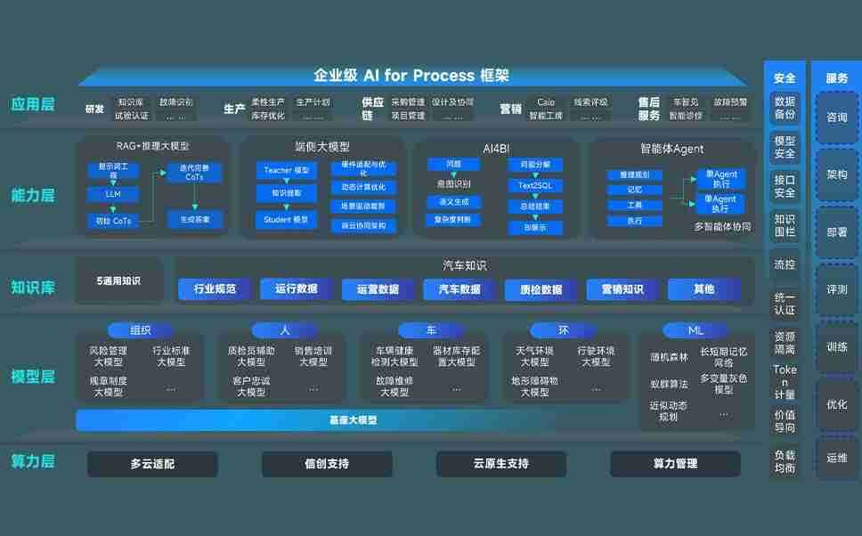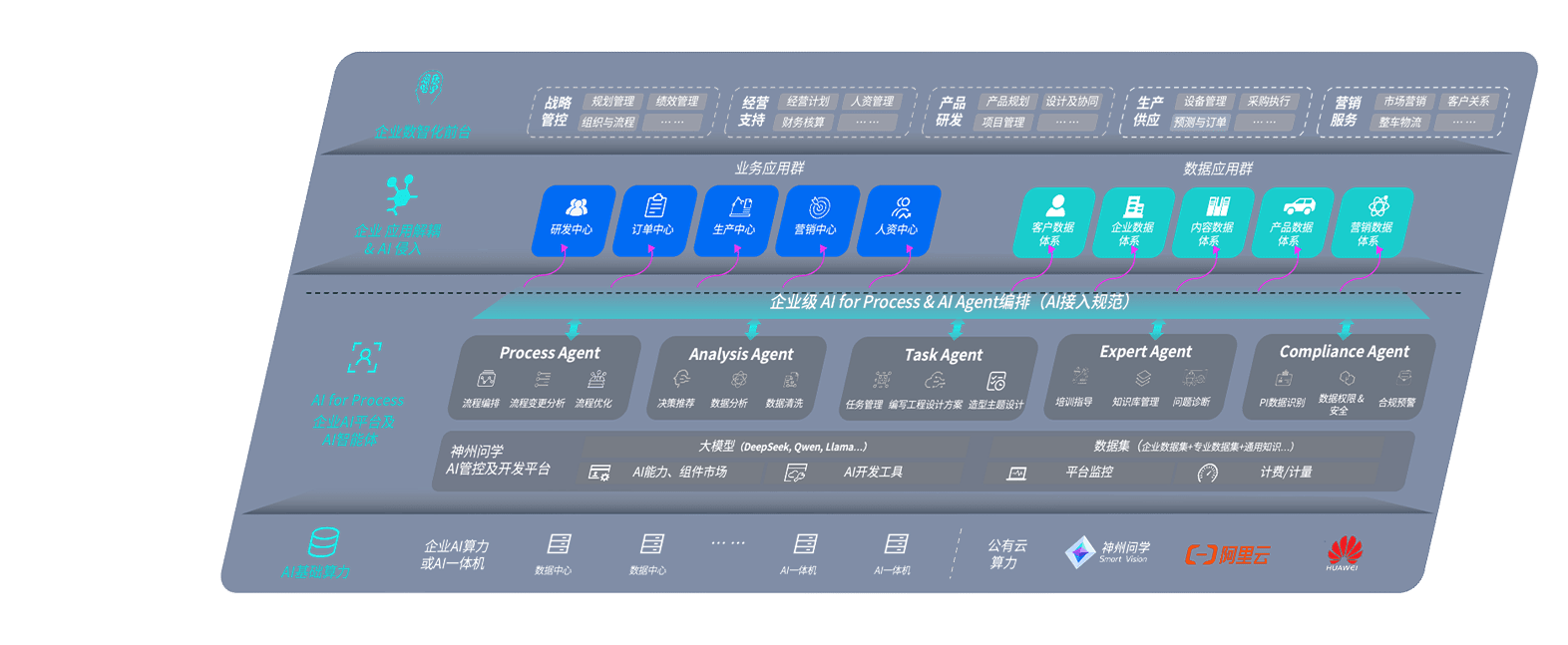 端到端的一站式AI工作空间深度融合了从企业战略规划到日常经营的全流程业务板块,,,,定向解决车企内部领域多、、部门多、、、、链条长、、、、场景碎片化等难题,,,,支持车企快速构建以AI为核心的生产力写作体系,,,,实现任务执行与AI能力的无缝集成与交互